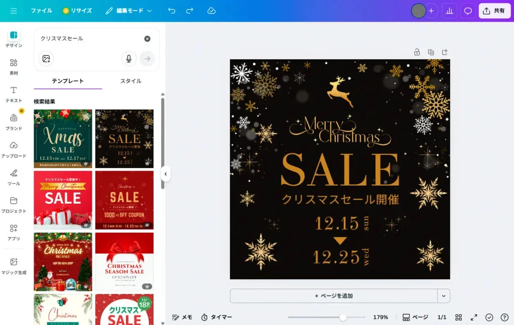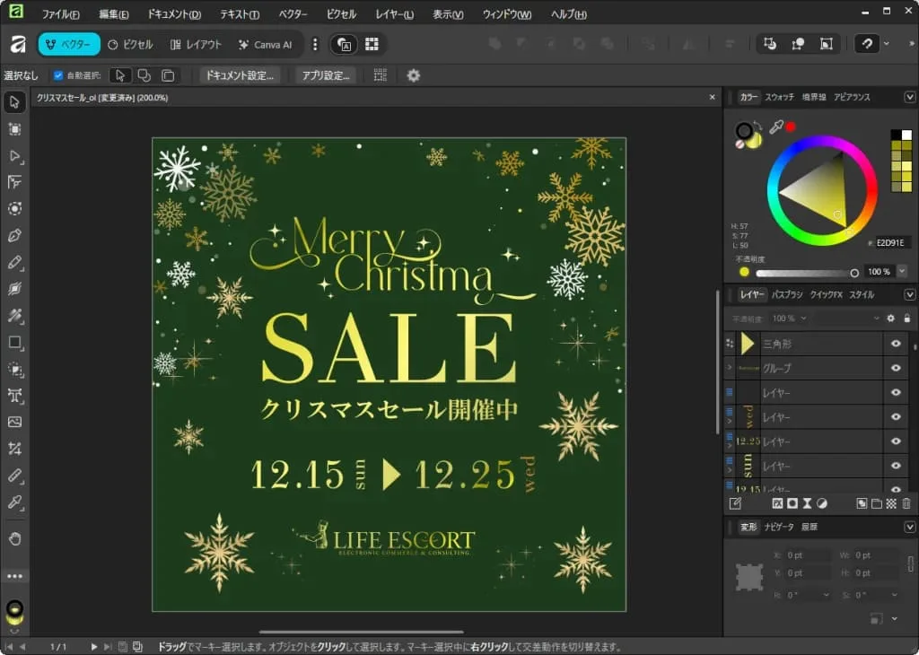 実際に、CanvaとAffinityを組み合わせた制作フローがどれほど効果的かを検証するため、ダミーとして「クリスマスセール用バナー」を1点制作してみました。