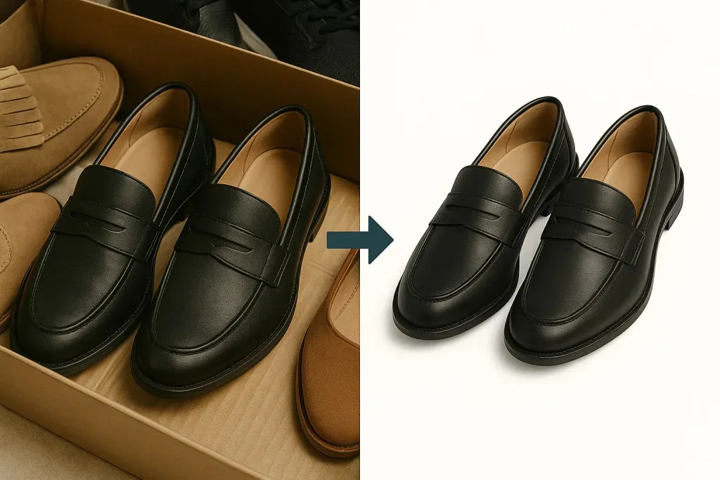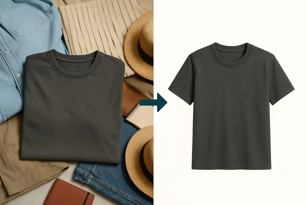 大量のECカットを処理する際、これまで外部に依頼していた切り抜きや色調整、ゴミ取りなどの初期レタッチをAIが自動でサポートできるようになりました。背景のムラや細かなホコリ、生地色のバラつきといった“整える作業”が短時間で安定して仕上がるため、制作全体のスピードが大きく向上します。最終的な質感や色の微調整は人の手で仕上げることで、AIの効率と人の判断を両立したレタッチが可能になっています。